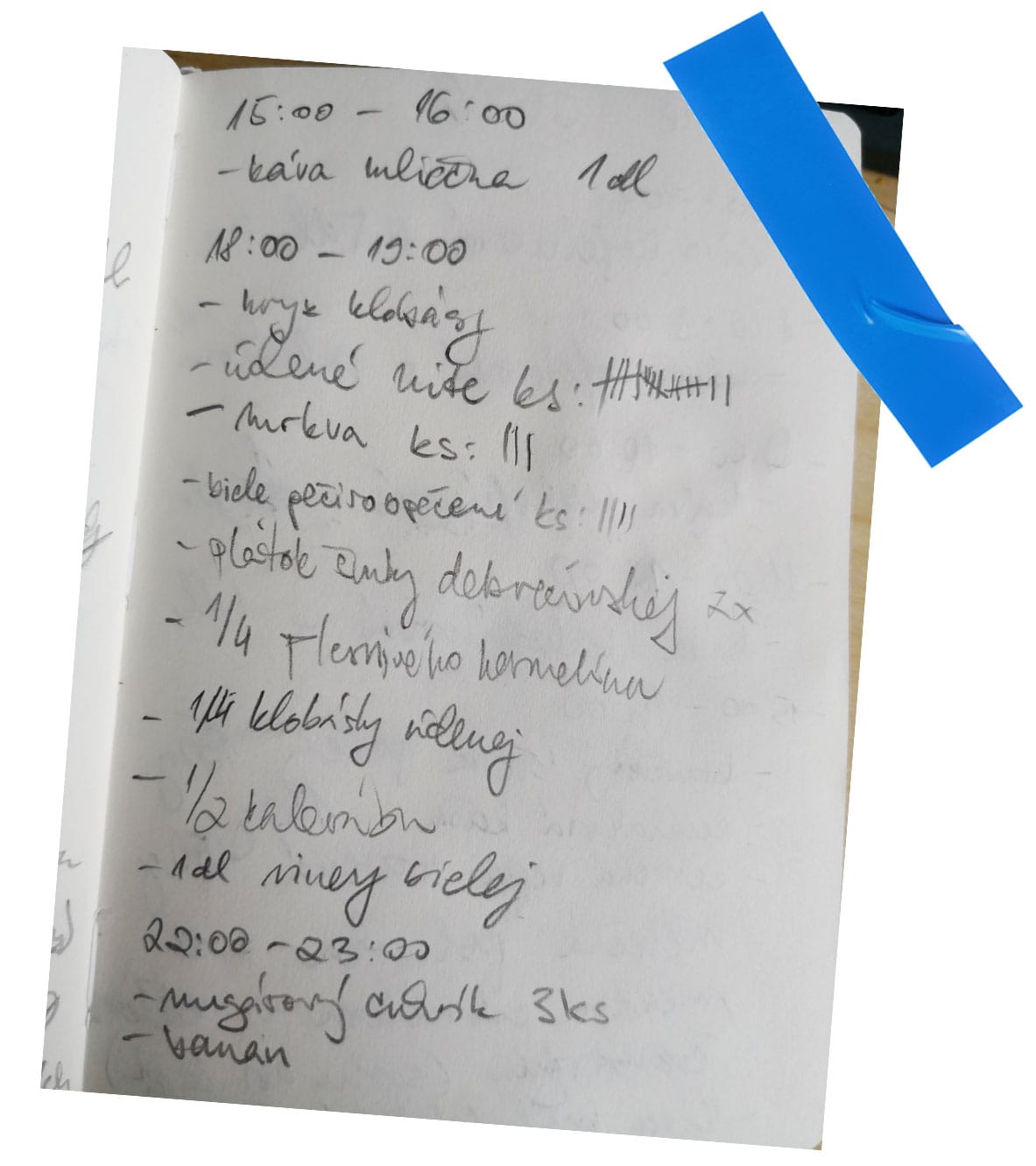 Ako 2. som si začal písať kalorický príjem. Počas jedného týždňa som si zapisoval, koľko čoho o koľkej zjem a vypijem.