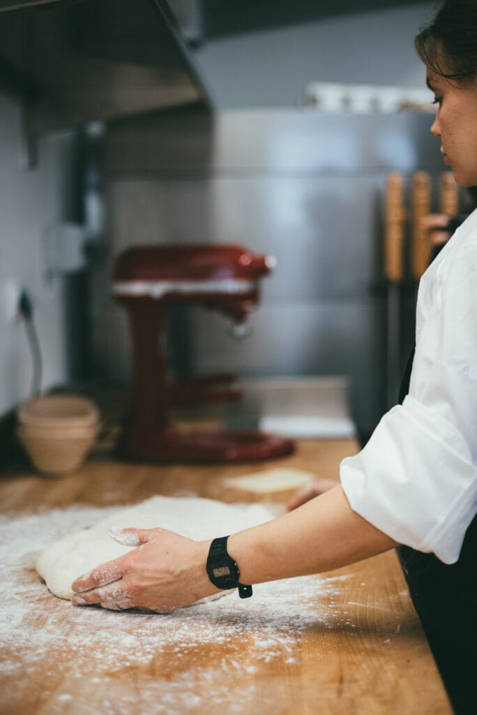 3. Pekár cesto prekladá a hnetie dovtedy, kým nezostane „elastické“ a jemné. Niekedy si to vyžaduje viac ako desať minút intenzívnej práce.