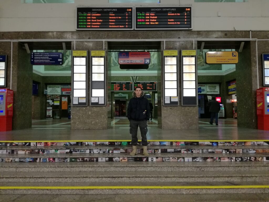 Matúš prišiel na Slovensko po dlhej dobe v zahraničí. V Bratislave bol pozrieť kamarátku, preto to vyšlo na posledný vlak. Bežne však chodí do Trnavy počas dňa.