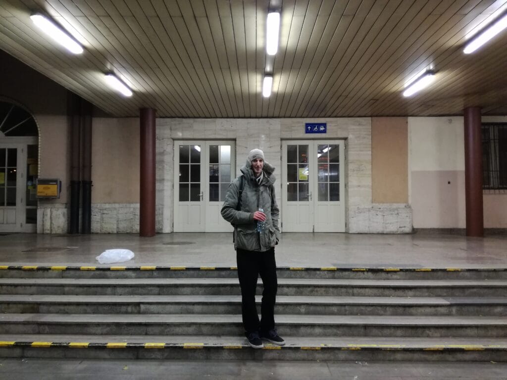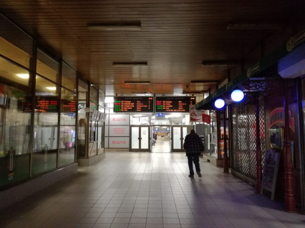 Je štvrť na štyri ráno, teplota mierne prekročila päť stupňov nad nulou a všetci pravdepodobne čakajú na prvý vlak. Všetci v zime vonku, pretože do budovy sa ešte polhodinu nedá dostať. „Uzávera stanice. V čase od 0:00 do 3:45 je stanica uzatvorená!“ prívetivo sa prihovára oznam na vchodových dverách.