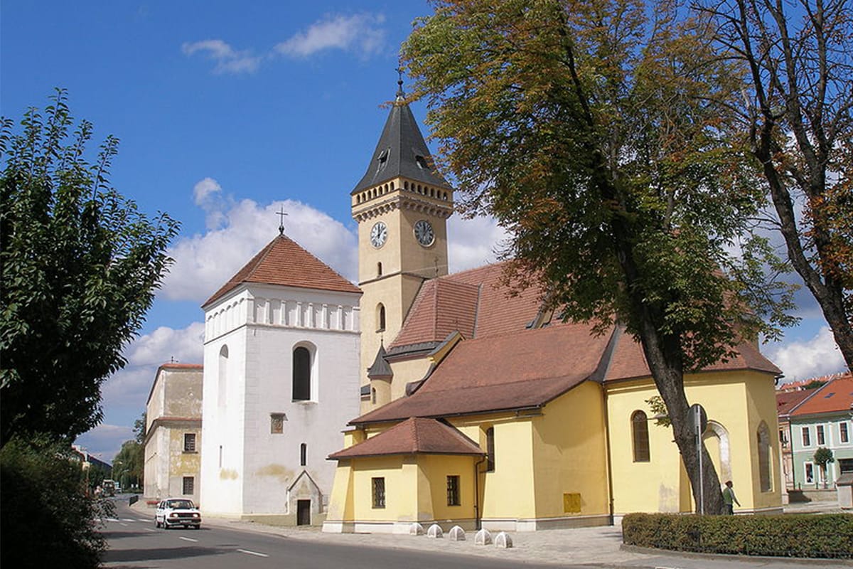 - 4. Na obrázku je gotický Kostol mučeníckej smrti sv. Jána Krstiteľa z 15. storočia. V ktorom meste sa táto stavba nachádza?