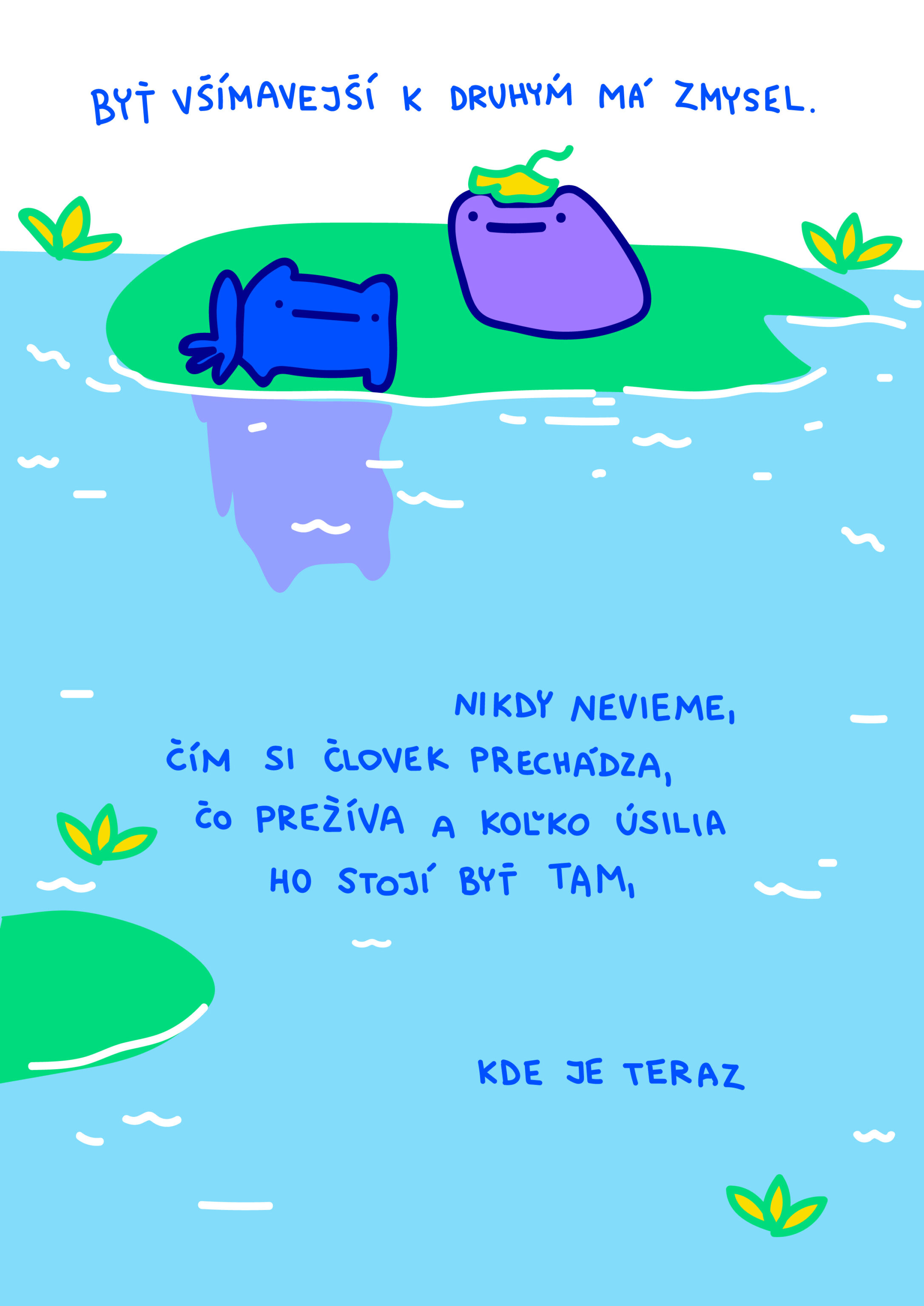 Ilustrovala to Sabína Svetlíková: „Táto myšlienka ma trochu rozľútostila. Je to niečo, čo treba povedať nahlas, no zároveň takéto správanie voči druhým nie je úplnou samozrejmosťou.