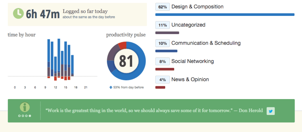 Na základe času stráveného používaním programov a webstránok vytvorí ucelený obraz pracovného dňa a rozdelí čas na produktívny a neproduktívny. Každý má len 24 hodín denne a rescue time vám veľmi presne napovie, ako ich využiť čo najefektívnejšie.
