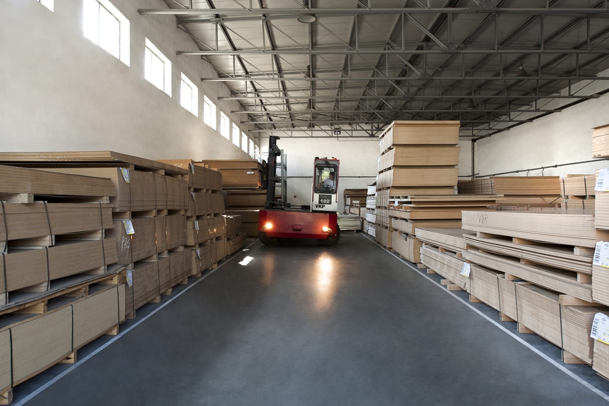 Do skladu veľkoplošného materiálu príjmu skladníci zakúpený materiál. Z tohto skladu sa následne dopravuje do všetkých výrobných hál.