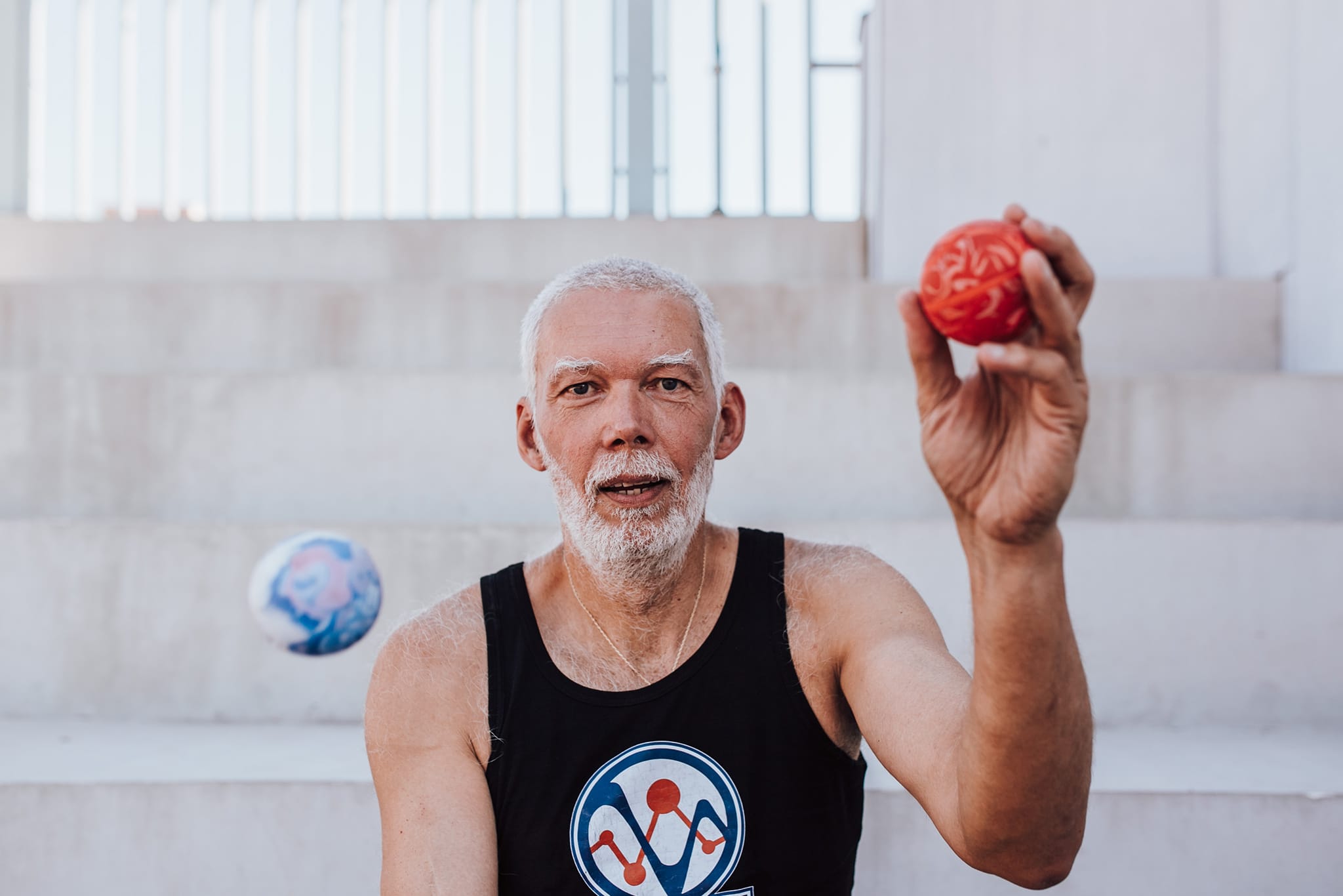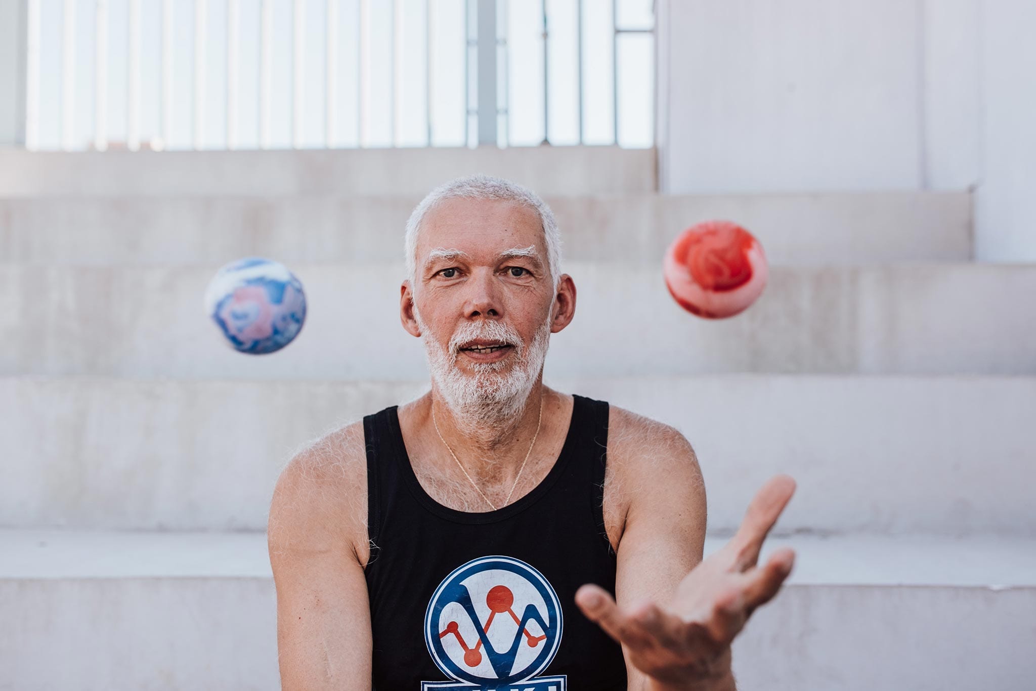 Vysoký urastený muž plný optimizmu a dobrej nálady vždy s tromi guľami poruke. To je Milan Roskopf. Bývalý basketbalista, maratónsky bežec a niekoľkonásobný držiteľ zápisov v Guinnessovej knihe rekordov za silové žonglovanie. Po prvý raz žongloval v deviatich rokoch z nudy v posteli s guľôčkami celofánu a dotiahol to až na svetové prvenstvo.