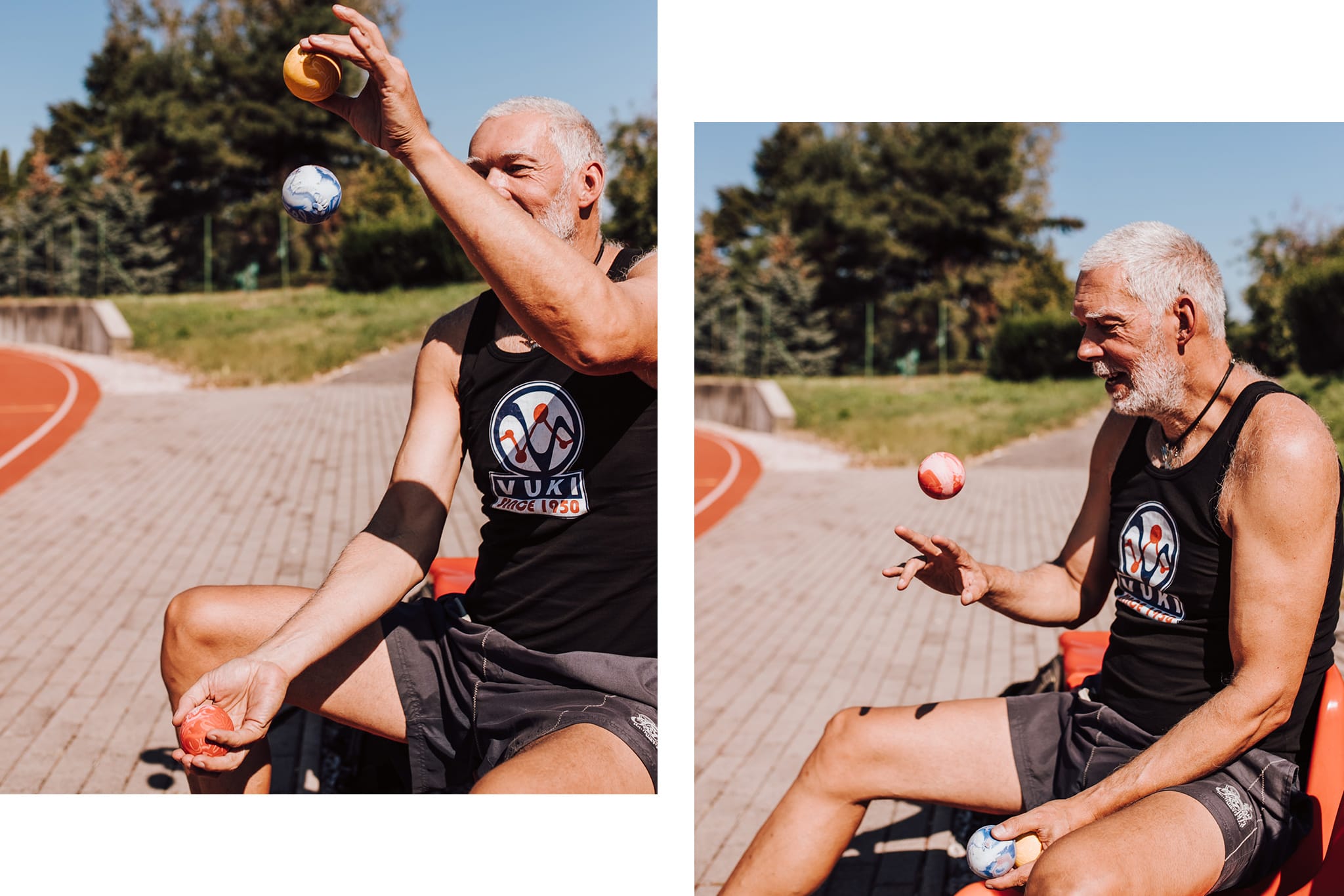 Lenže s behom s ťažkými váhami som začal ako prvý. S loptičkami som odžongloval polmaratón. Mám odkráčanú trasu z Jihlavy do Pelhřimova, tam mi spadli raz – 700 m pred cieľom. Trvalo to vyše päť hodín, bolo to celkom náročné.