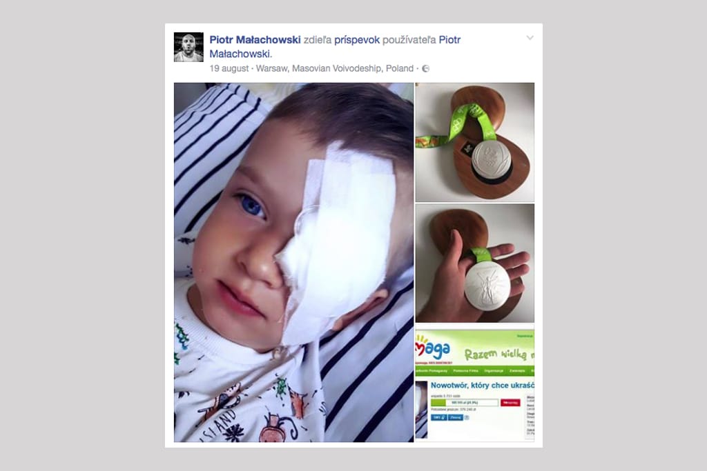 Poľský atlét Piotr Malachowski získal v hode diskom skvelú striebornú medailu. Jej skutočná cena sa však ukázala až neskôr. Piotr totiž svoju medailu ponúkol do aukcie a výťažok venoval chorému chlapcovi, ktorý trpel ojedinelou rakovinou oka a potreboval drahú liečbu v zahraničí. Piotrové slová nepotrebujú žiadny ďalší komentár: „Poďme bojovať spolu za niečo omnoho cennejšie. Za zdravie jedného úžasného chlapca.“
