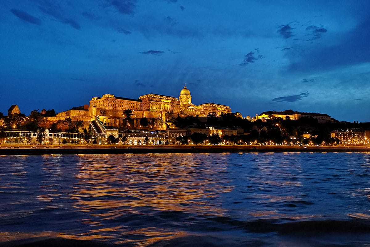 Historický Budínsky hrad, ktorý je od roku 1987 súčasťou Zoznamu svetového dedičstva UNESCO, pôsobil v noci ešte veľkolepejšie. Vysvietený teplým žltým svetlom dokonale ladil s tmavomodrou oblohou a náladou mesta.