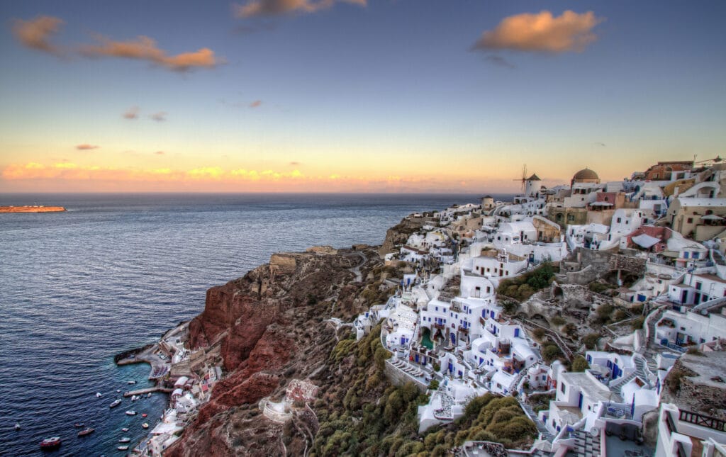 Idylická grécka dedinka je preslávená po celom svete bielymi domčekmi prikrytými modrými strechami, ktoré sa týčia na skalnatom pobreží s výhľadmi na pokojné more.